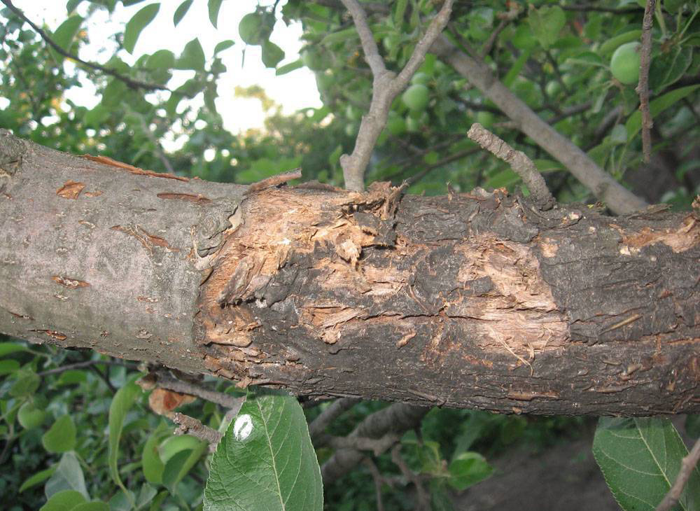 На яблоне цитоспороз протекает с такими же симптомами, только без камедетечения. К основным необходимо причислить: