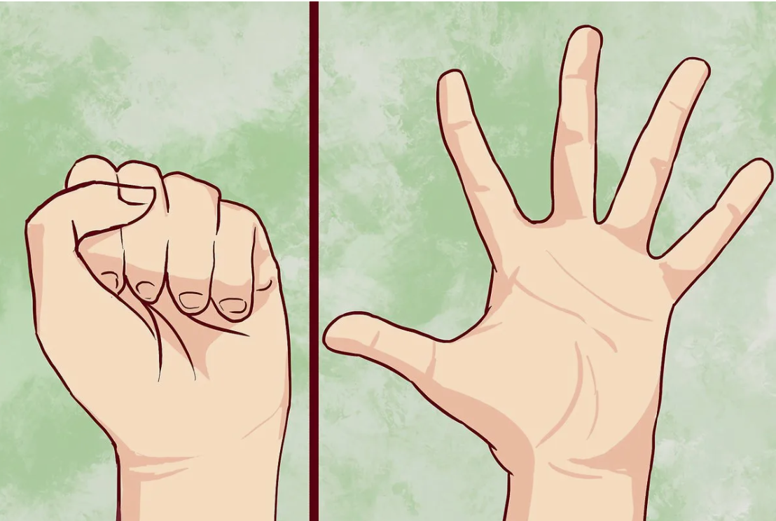 - Постарайтесь широко разводить пальцы рук, ощущая мягкое растяжение мышц кистей, а также пальцев рук.