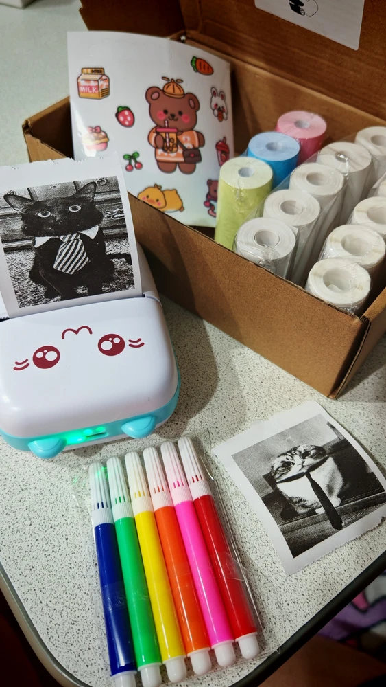 Мини-принтер представляет собой компактное устройство для печати наклеек без необходимости использования чернил и картриджей. Он работает по принципу термопечати и подключается к мобильным устройствам посредством беспроводного интерфейса Bluetooth.