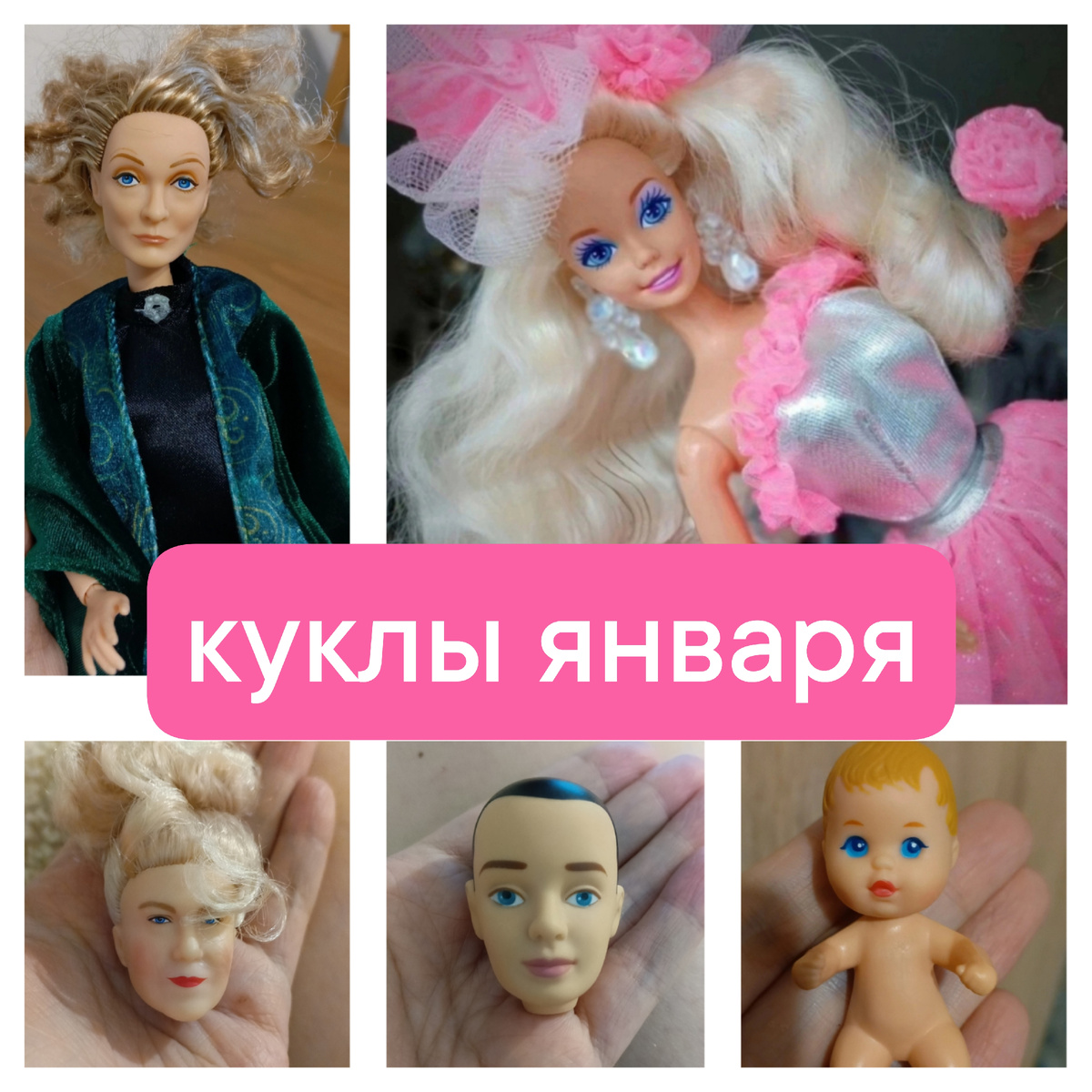 Январь оказался достаточно интересным в плане покупок. Гениальная идея покупать по 1 кукле в месяц разбилась о камни реальности в коллекционировании🤦 Приобрела 2 портретные куклы - Макгонагалл и Елизавету. Раньше я даже не смотрела в их сторону🤦 Готовлю большой проект сериал Сага о сёстрах Робертс, поэтому приобрела голову ретро Кена - даже похоже на оригинал😎 Наконец-то я поселила Barbie 3looks 1994 - она шикарна, и, как все суперстарки, смотрит на тебя огромными, любящими глазами😍 И маленькая Krissy💔
