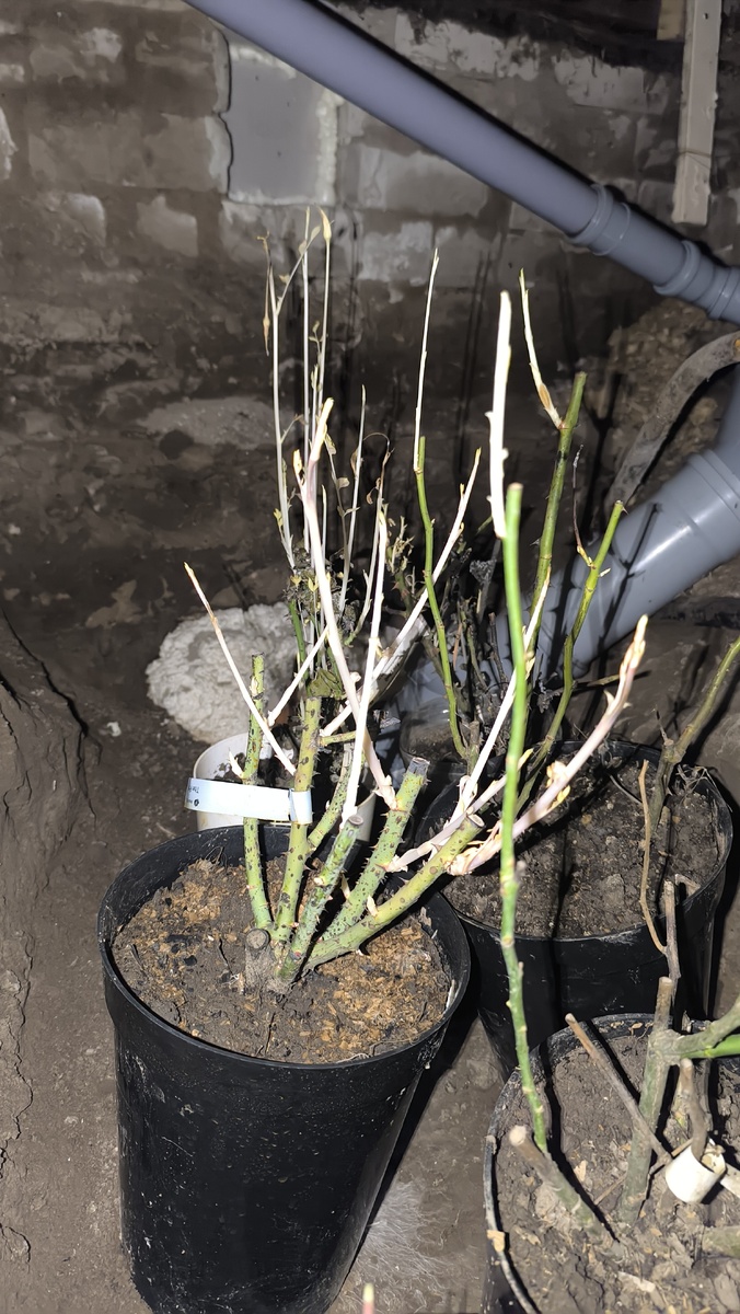 Часть роз пришедших осенью я посадила по горшкам и спустила на зиму в подпол на даче. Смыл это в том чтобы дать капризным японкам шанс на мягкую зиму и акклиматизацию горшках, да и проверка сортности, а потом подбор места под новичков. И так что у нас в подполье творится в картинках. Да теплая зима даёт о себе знать розы пытаются расти. И это не самое страшное, рас растут то скорее всего в влажном грунте и укорениться смогли как следует . Но вот есть две подозрительные красавицы которые скорее мертвы чем живы и дело тут точно не в сильных холодах, а в качестве и силе самих саженцев. При этом розы осенью из за теплой погоды вполне себе расли потихоньку и убирались подпол зелёными и жизнерадостными. Печально придется искать замену. Ну и для заставки парочка.