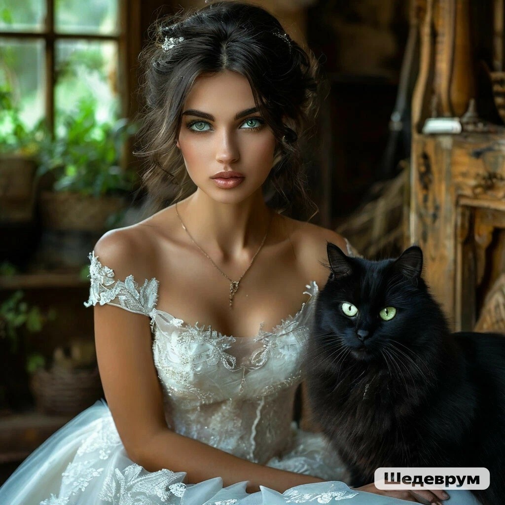 Рядом с кошкой появился призрак молодой женщины. Жгучая брюнетка с зелёными глазами в длинном белом платье (видно, ее похоронили в свадебном наряде) присела напротив меня.