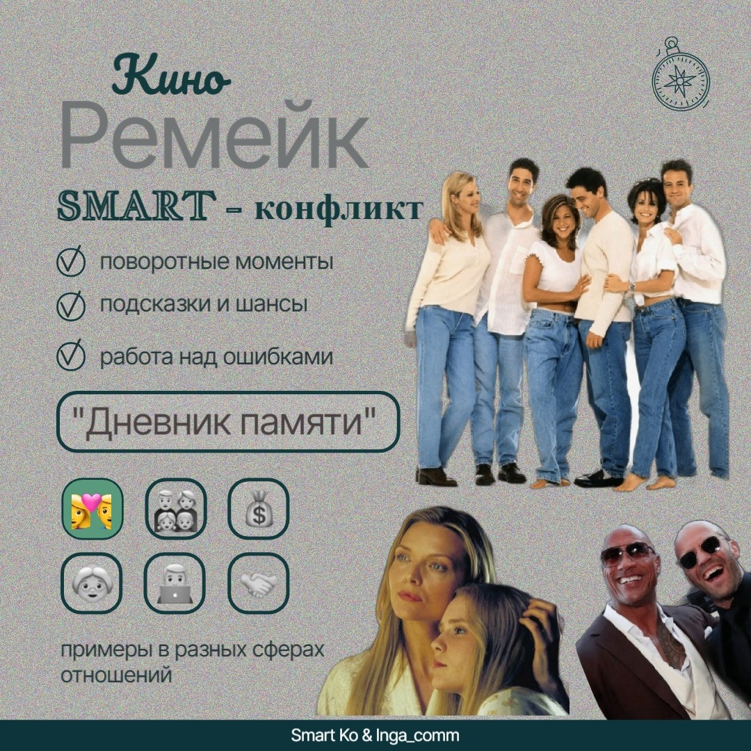 Романтичная история Ноя и Элли была не безоблачна, конфликты в кино необходимы для захвата внимания зрителя. Используем этот момент, чтобы наглядно понять, как выяснять отношения иначе. ✔️ smart "Внимание" вместо "Зарождения" Элли перед выбором: будущее с женихом понятно, а с Ноем - как лотерея без правил. Неизвестность чертовски пугательна. Она ждет, что Ной нарисует ей хоть какой-то образ их будущего. Ной видит ее замешательство и мягко начинает разговор. ✔️ smart "Есть тема" вместо "Напряжение" Ной озвучил вопрос: Что она собирается делать? Элли честно ответила: "не знаю". Если бы его внимание оставалось на ней, то увидел бы в ее глазах крик о помощи; в позе - открытость к общению; в нервозности ожидание поддержки. Ах, если бы он не перевел внимание на себя, то пошел бы по верному пути на 3 smart этап. ❌ Classic "Запуск" вместо smart "ты как?" Надо было задавать вопросы: "в чем сомнения? чем ей помочь? что должно произойти, чтобы она знала?" Элли бы ему все рассказала и не пришлось