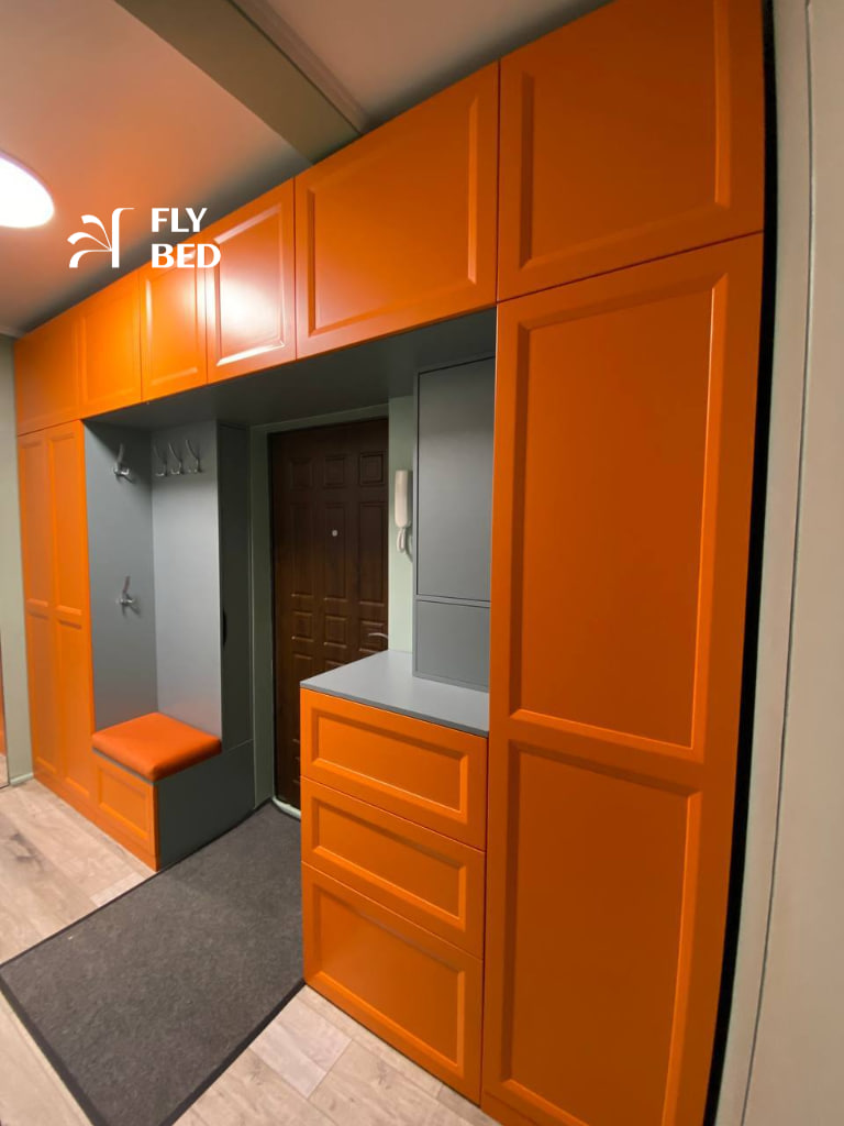 Этот проект мебели для прихожей был создан с учётом пожеланий наших клиентов, которые искали функциональное и стильное решение для организации пространства. Основная идея заключалась в создании удобной системы хранения для одежды, обуви и аксессуаров, сохранив при этом гармоничный и современный дизайн. Яркие оранжевые фасады стали главным акцентом интерьера, оживляя помещение и придавая ему энергичный вид. Мебель оснащена эргономичными элементами: выдвижными ящиками для мелочей, закрытыми шкафами для верхней одежды, а также специальными секциями для зонтов и других аксессуаров. Зона с мягким сидением обеспечивает комфорт при обувании, а многоуровневая структура позволяет удобно хранить как повседневные, так и сезонные вещи. Комбинация тёплого оранжевого и нейтрального серо-зелёного оттенков создаёт стильный и сбалансированный интерьер. Этот проект прекрасно демонстрирует, как индивидуальный подход позволяет объединить практичность и эстетику. ___________⠀⠀⠀⠀ ⠀ ⠀ Шоу-рум в Москве: W-Pla