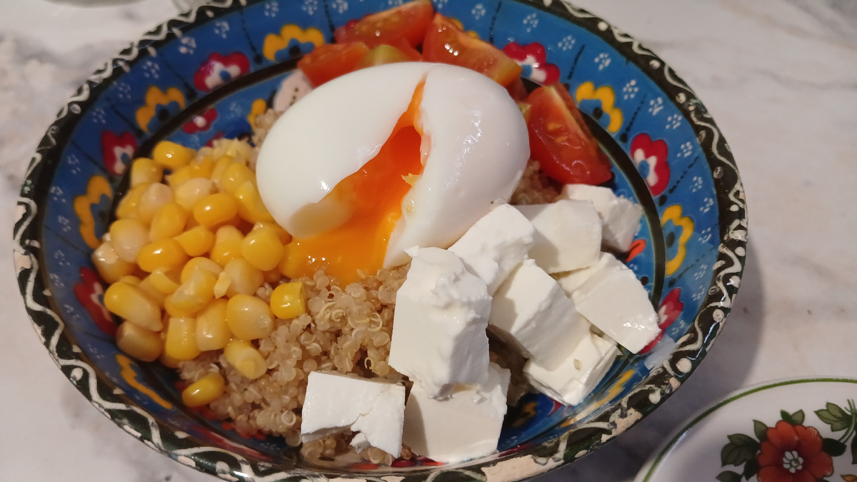 Продолжаем экономить и марафонить - готовим из запасов в морозилке и шкафчиках. Среда - день боула на завтрак. За основу взяла киноа. К крупе добавила 5-тиминутное яйцо, брынзу, помидоры черри и кукурузу, полила кунжутным маслом. И к кофе - кусочек грушево-лимонного тарта После школы сына забрала, долго проездили с ним по делам, сами не ожидали. Вернулись только почти к 5 вечера. Хорошо, с утра сварила чечевицу. Приготовила чечевицу с овощами и яйцом. Этим и пообедо-ужинали. Чечевицу посыпала еще тертым сыром. И себе добавляла грибы - маринованные маслята. Открыли пачку сухарей из Чижика. Ну сухари - это просто 🔥 Свежие, много изюма в них, в меру сладкие. В общем, мы все таскали эти сухари весь вечер и умяли практически всю пачку 500 г за вечер 🤦♀️ Мой перекус: мандарин, кофе, сыр и сухари Меню год назад Чечевица с овощами и жареными яйцами Из запасов: сегодня всё! мандарины, сыр, сухари, кофе, овощи из морозилки, чечевица зеленая, яйца, брынза, киноа, кукуруза