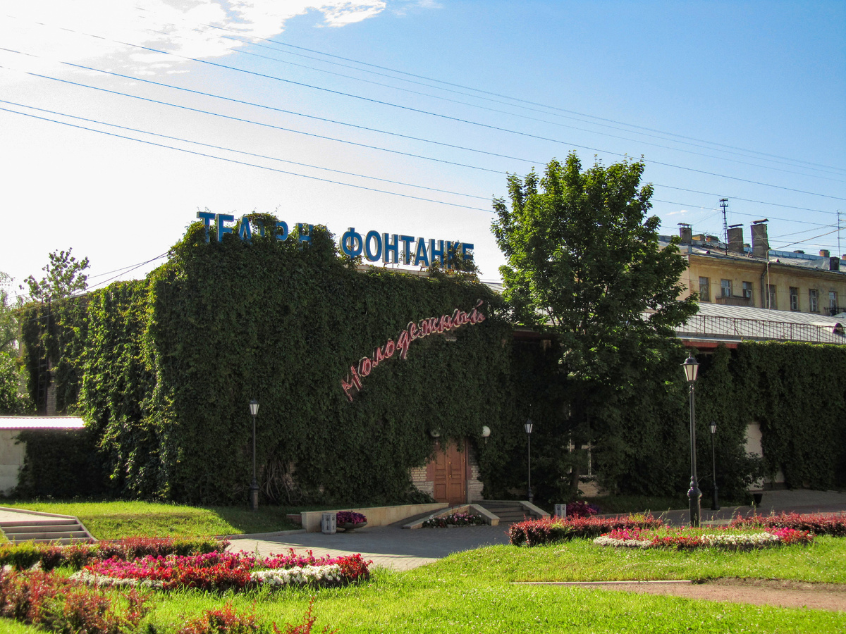 Санкт-Петербургский государственный Молодежный театр на Фонтанке – молодежный не только по названию, но и по «возрасту». В январе этого года театру исполнилось всего 45 лет. Несмотря на сравнительно небольшой стаж своей деятельности, он считается одним из лучших театров северной столицы. Два здания театра (Большая сцена и Малая сцена) расположены в Измайловском саду, который имеет собственную интересную историю. Первоначально для спектаклей Молодежного театра оборудовали бывшее здание крытого катка. Сейчас здесь расположена Малая сцена театра. Популярность театра росла, и в 2007 – 2010 годах была произведена перестройка здания бывшего летнего театра «Буфф», который действовал в Измайловском саду с 1901 года (в послевоенное время он стал называться Летним театром Измайловского сада). После перестройки в новом здании теперь располагается Большая сцена театра на Фонтанке. В фойе здания Большой сцены театра: В зрительном зале Большой сцены: Любопытно, что при перестройке здания под Большую