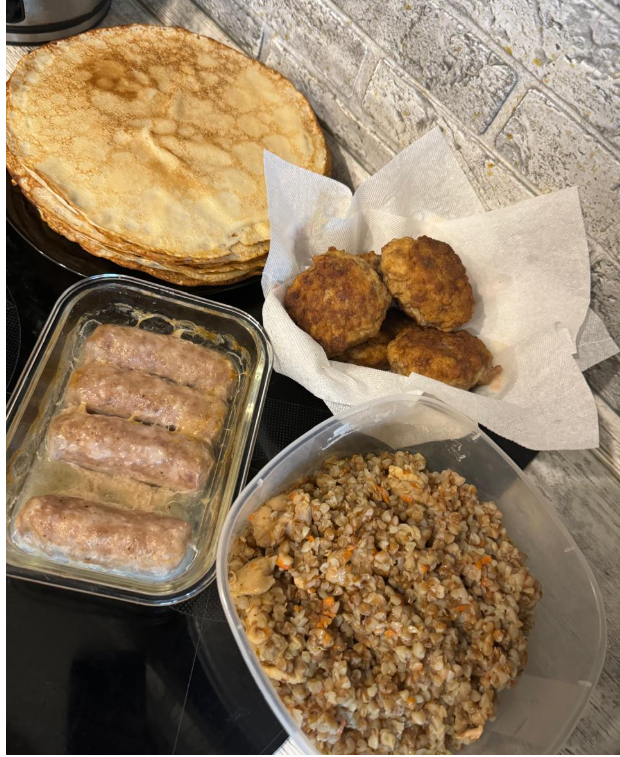Всем привет! У меня выдалась тяжелая рабочая неделя, было несколько дополнительных смен, т.к. выходила на подмены, а семью кормить надо, поэтому у нас, как всегда, скромно и просто. Местами не очень красиво, но вкусно и по-домашнему. Ничего сверхъестественного не готовлю. Всё на скорую руку, без лишних заморочек. 1. Гречка по-купечески (с курицей) 2. Купаты 3. Котлеты 4. Блины Гречкой поужинали всей семьей, купаты и котлеты ушли в прикуску, кто из детей за ужином, а кто после ужина таскал-кусочничал. Оставшаяся порция гречки отправилась на работу на обед мужу и парочка котлет мне на обед. 1. Рисовая каша в мультиварке 2. Суп куриный с вермишелью 3. Запеканка 4. Компот из яблок и остатков варенья из земляники Запеканка ушла почти вся сразу. Дети ее обожают, теста в этот раз получилось много на 2 формы, еще и осталось, пришлось раскидать по формочкам для кексов. Для детей что-то новое, но привычно любимое. Компот выпивается за 2 дня (кастрюля 5 литров). Суп, надеюсь, растян