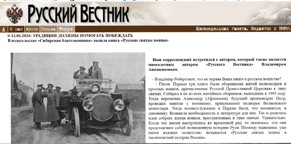 Наш корреспондент встретился с автором, который также является многолетним автором «Русского Вестника» Владимиром Анищенковым.