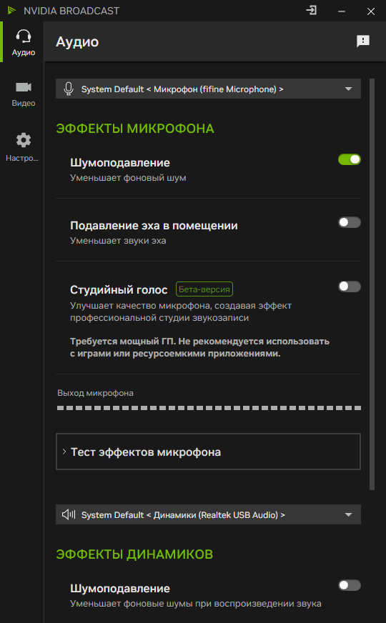 Виртуальный направленный свет работает классно, но загружает мою видеокарту на 90 процентов. В любом случае все функции никому не нужны. Лично я пользуюсь только шумоподавлением от nvidia, потому что оно не нагружает систему и теперь хорошо работает.