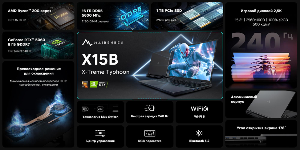 Компания MAIBENBEN объявила о планах по запуску в России игровых ноутбуков, оснащенных графическими процессорами NVIDIA GeForce RTX 50-й серии.