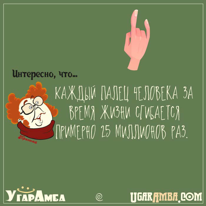 Каждый палец человека за время жизни сгибается примерно 25 миллионов раз. Источник