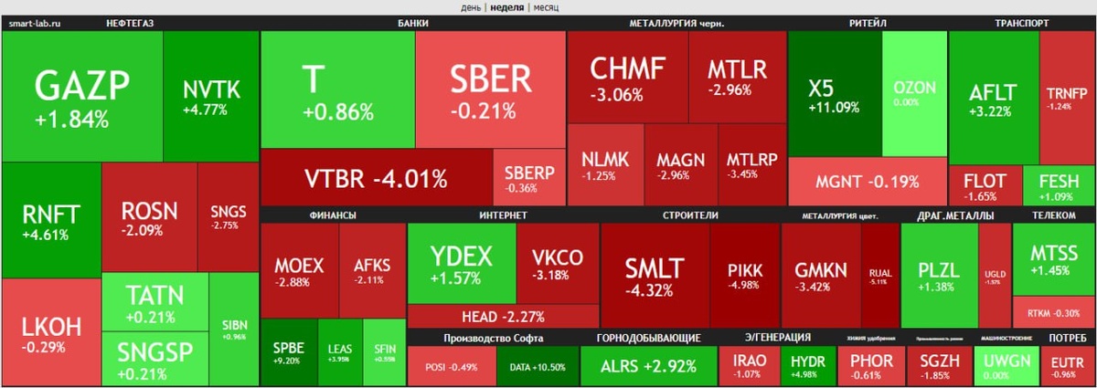 Итоги недели Вот и закончился первый месяц наступившего года, а мы тем временем решили подвести краткие итоги рынка за прошедшую неделю. Индекс Мосбиржи продолжает болтаться на одном уровне уже вторую неделю подряд между 2870-2990 б.п. Для дополнительного рывка вверх не хватает позитива. Смотря на все со стороны, кажется, что рынок похож на сжатую с двух сторон пружину. Любая весомая новость может направить график резко вверх или же, наоборот, вновь уйти к 2500 по Индексу. Насчет инфляции, ключевой ставки и иных факторов давления рассказывали совсем недавно здесь. Тезисно вынесем данные по росту цен и ожиданиям: Инфляция в РФ с 21 по 27 января 2025 года составила 0,22% после 0,25% с 14 по 20 января. С начала года к 27 января рост цен составил 1,14%, а годовая инфляция ускорилась до 10,14% с 10,04% на 20 января. Инфляционные ожидания населения увеличились до 14,0% с 13,9% в декабре. Бизнес-планы предприятий вовсе закладывают на этот год рост цен на 10,7%, тогда как Банк Росс