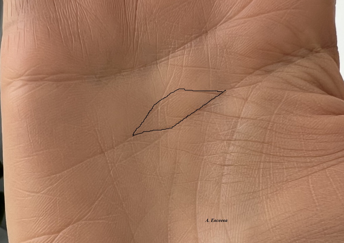 Но как всегда, хочу отметить, что стоит обращать внимание на подобные знаки только если: во-первых если они имеются на обеих руках, во-вторых есть и другие подтверждающие знаки подобного свойства (мистические кольца, вороньи лапки, треугольники или ромбы под средним пальцем, пентаграммы и т.д.).