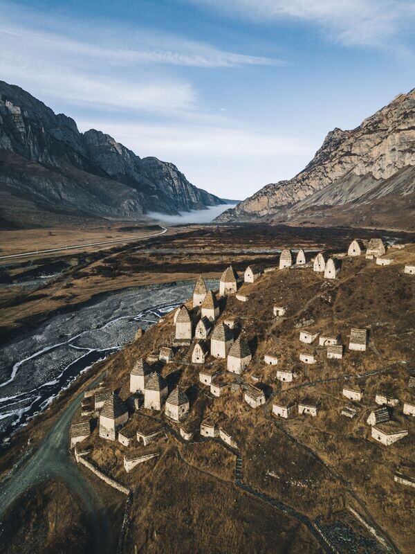 Даргавс — это древний некрополь, состоящий из десятков каменных склепов. Эти сооружения, напоминающие маленькие домики, были построены в XIV–XVIII веках для захоронения целых семей.
