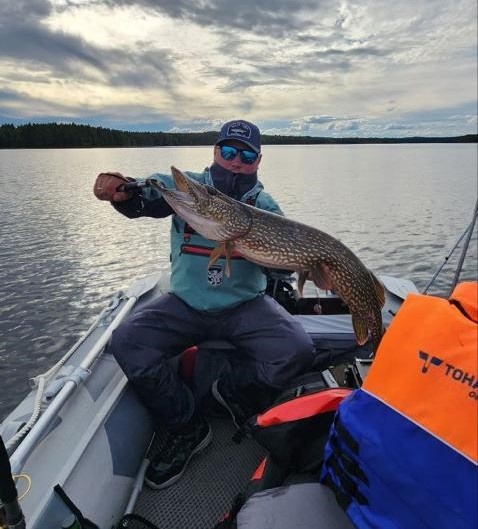 Когда то она была беглянкой из садков рыбзавода, которые раздавило льдом и вся рыба ушла в озеро (со слов местных жителей). Ее не так много как щуки или окуня, но удачливым везет. Потом заходим в примыкающие озера и потихоньку сплавляясь вдоль берегов одна за другой выходят щучки разных размеров от кило до трех-четырех, и между ними окуня. За утро до обеда можно наловить достаточно много рыбы, и погода тут не при чем. Выуживается и в дождь и в солнце. На носу сентябрь и подходит время ей нажираться перед ледоставом. Зима приходит быстро. Если есть желание передохнуть на природе, причаливаешь на берег и отдыхаешь сколько душе угодно. Можешь грибы пойти пособирать.