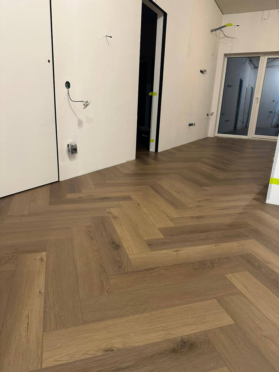 В одном из домов был выполнен качественный монтаж SPC ламината Aberhof 5751 Diamante 🏡, приобретенного вместе с услугой укладки в магазине ПолЦены 🛒. Это напольное покрытие с замковым соединением 🔗 идеально сочетает эстетику и практичность, создавая стильный интерьер в современном темно-сером оттенке. Благодаря 43 классу износостойкости и SPC-основе 💪, ламинат выдерживает повышенные нагрузки, устойчив к влаге 💧 и механическим повреждениям. Тисненая поверхность с рисунком "елочка" ✨ и фаской V4 придает покрытию эффект натуральной деревянной доски. Монтаж прошел быстро и аккуратно ⚡, а результат превзошел ожидания! Теперь в помещении уютно и комфортно, а напольное покрытие прослужит долгие годы. Хотите такой же эффектный и надежный пол? Выбирайте SPC ламинат Aberhof 5751 Diamante в ПолЦены – широкий ассортимент, доступные цены и профессиональный монтаж! ✅