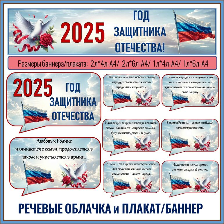 Год защитника Отечества 2025. Оформление: речевые облачка и плакат.