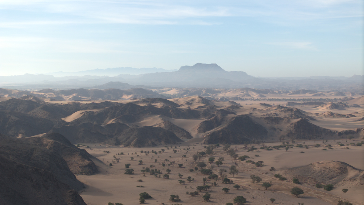 Дамараленд — один из самых загадочных уголков Намибии в Южной Африке. Этот регион, словно сошедший со страниц фантастического романа, сочетает в себе безжизненные пустыни, причудливые скальные формации и редкие оазисы жизни. Здесь, среди красноватых песков и выжженных солнцем равнин, обитают пустынные слоны — уникальная популяция, научившаяся выживать в экстремальных условиях. Они бродят вдоль пересохших рек, оставляя следы на песке, который когда-то был дном древнего океана. Рядом с ними охотятся пустынные львы — призраки саванны, чья шерсть сливается с цветом песка. Но главное сокровище Дамараленда скрыто под ногами: Окаменелый лес (Petrified Forest), возраст которого оценивается в 150–300 миллионов лет. Это не просто груда камней — это застывшие во времени свидетели эпохи, когда по Земле ходили тираннозавры, а в небе парили птеродактили. 280-300 миллионов лет назад Африка была частью Гондваны — суперконтинента, объединявшего современные Южную Америку, Антарктиду, Австралию и Индос
