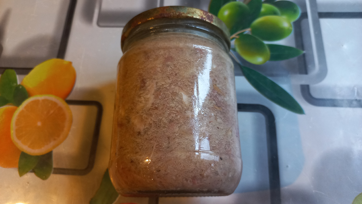 Здравствуйте, мои дорогие ❤️ В этой банке - холодец, он был приготовлен и закручен примерно год назад. Сегодня мы его достали из погреба, для того, чтобы сварить щи. Как он был сделан: после приготовления тушёнки из мяса уток, остается много косточек. Их варили в кастрюле вместе со свиной ножкой и затем отварное мясо с костей снимали. Получившуюся густую массу (мясо с бульоном) накладывали в предварительно стерилизованные поллитровые банки. Закручивали винтовой крышкой, опускали в воду. Так, чтобы банка полностью была скрыта водой, вместе с крышкой. Стерилизовали 2 часа на медленном огне. Снимали с огня и остужали в той же воде. Потом банки с холодцом переносили в погреб, но можно хранить и в холодильнике. Под крышкой у холодца сверху есть слой жирка, как у тушёнки, только потоньше. Если так получилось, что вы сварили много холодца, и он остался, то можно его заморозить (но морозилка обычно забита под завязку) или закрутить в банки по этому способу. Потом просто достать и открыть, к