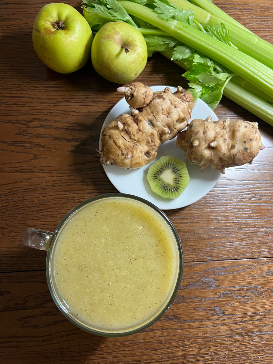 Хочу предложить рецепт, который непременно будет способствовать вечной молодости - это смузи из топинамбура, киви, яблок и сельдерея. Что потребуется: Все порезать на мелкие кусочки, чтобы удобнее взбивать до однородной массы в блендере. Приятного аппетита! #веганскиерецепты #веган #веганство #смузи #веганскаяеда #веганскоепитание
