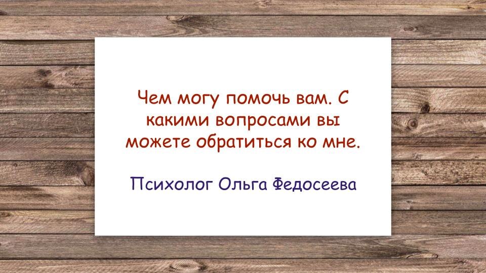 ■ Записаться на консультацию по тел.: 8-921-436-87-03 (мессенджер ватсап, телеграм), почта olgafed5@mail.ru, скайп olgafed3003 На звонки не отвечаю.■ - Вернуть себе ощущение жизни, обрести психологическую взрослость. Авторская программа "Взрослая женщина". - Избавиться от любовной зависимости/контрзависимости. - Встретить любовь, выйти замуж; - Повысить самооценку, вернуть самоценность;- Наладить отношения с собой и людьми; - Легко получать желаемое.- Реализовать свои мечты и желания.- Сделать важный выбор в бизнесе и работе (имею опыт организации собственного бизнеса). - Исцелить свою природную женственность и сексуальность, - И жить той жизнью, о которой давно мечтаете. Работаю в интегративном подходе (Гештальт-терапия, Телесно-ориентированная терапия, Арт-терапия, работа с использованием МАК, проективные методики). Это помогает мне подобрать то, что будет работать именно у вас. Научные исследования доказывают, эффективность интегративного подхода свыше 90 процентов! ■ Записаться на