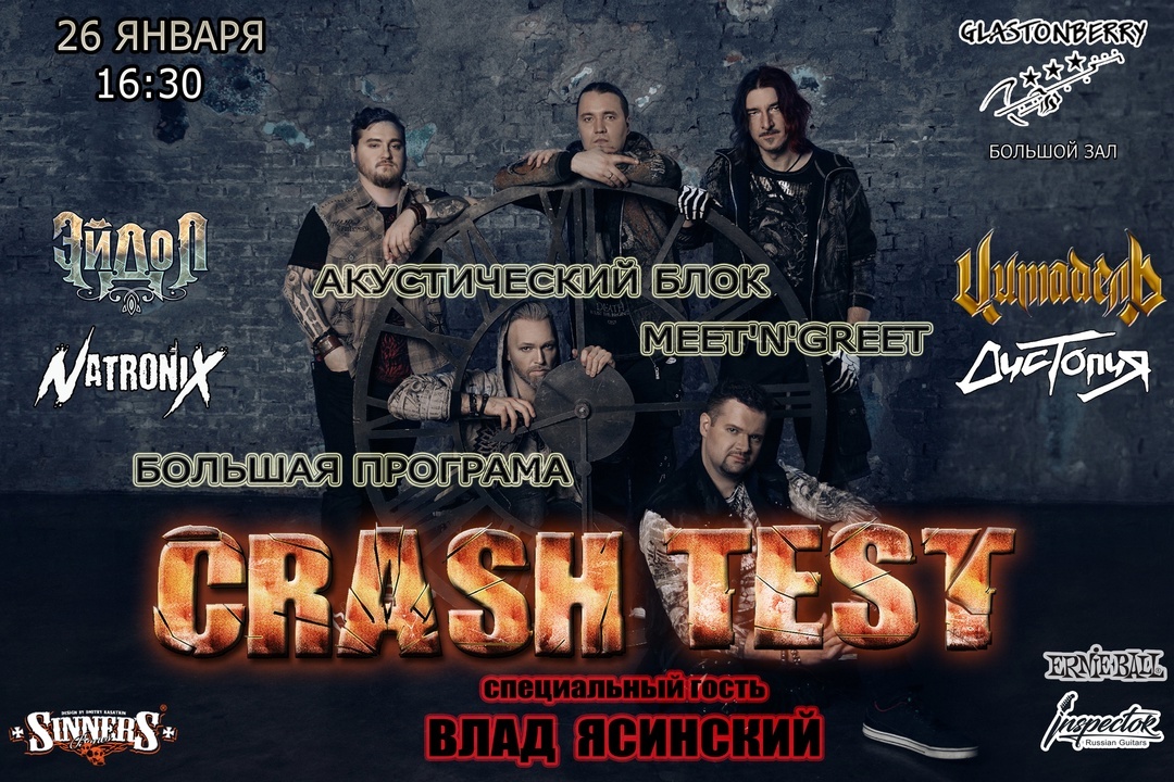 26 января в большом зале клуба GLASTONBERRY группа CRASH TEST представит вашему вниманию большую программу, в которой найдётся место как для новых песен, так и для проверенных временем хитов!!