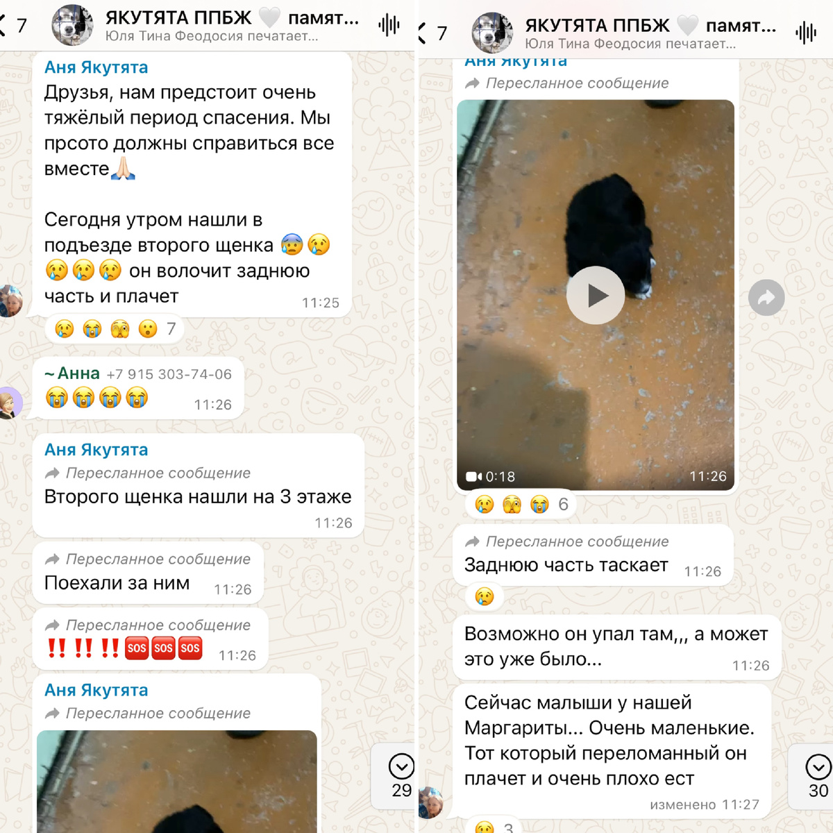 Я думала, уже удивляться не придется, чего только не насмотришься, спасая животных, но вот это… ИЗ РЯДА ВОН!!! Утро началось вот с такой новости!!! Это в продолжении вчерашней статьи о выброшенном месячном щенке в подъезд, когда на улице было -38 Подробнее здесь: Маргарита пол ночи искала второго щенка, она лично не видела их, ей сказали, что их двое! Когда она вышла, нашла одного, сразу написала объявление на Авито, благодаря которому мы узнали о ситуации, ну и дальше все описано в статье выше! Второго малявки след простыл… 🥺 И вот утром такая новость… Найден, но покалечен!!! 😱 Сначала мы повезли его к Маргарите, у которой была Севиль (крошка с подоконника)🙏❤️ У нее щенок не ел, плакал! Аня сказала, что у нас есть вылет на 3 число, и в принципе можно его вывезти, но до этой даты надо еще дожить, а дитё не ест и плачет! Было принято решение свозить шенулю на рентген! Осуществить это вызвалась наша Настя - участница команды, за что огромное ей спасибо! Она забрала малыша и поеха