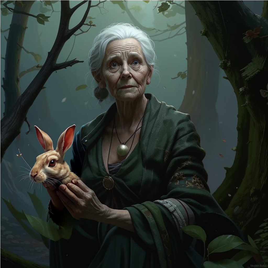 – Это мое! - девушка достала стрелу из колчана и выпустила ее, пробив руку старухи, державшую зайца, насквозь.