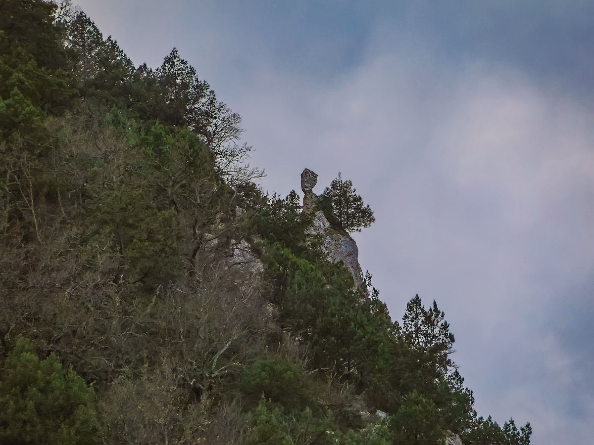 Ну вот и первый вид на этот загадочный камень. Оказалось, что это не обломок, свалившийся сверху и застывший на гребне скал, а причудливая форма самих скал "съеденных" эрозией под воздействием дождей и ветров.