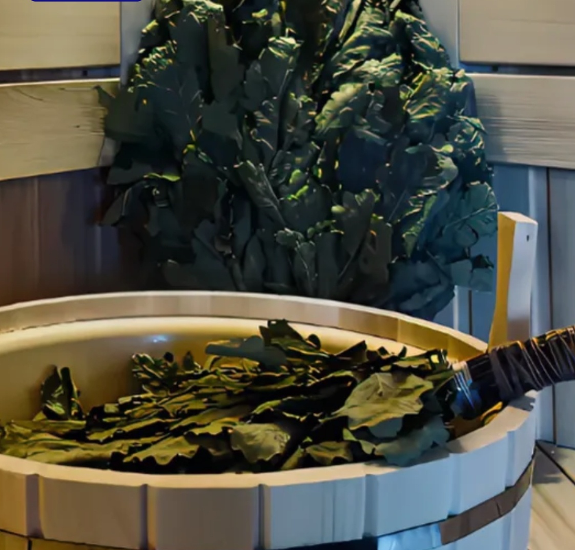 Дубовый веник известен своей прочностью и насыщенным ароматом. Он обладает противовоспалительными свойствами, улучшает состояние кожи, снижает давление и помогает снять стресс.