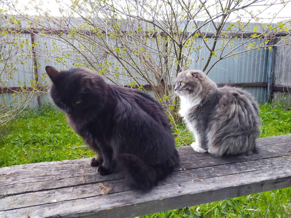 У меня есть тыква. Нет, не так. Тыкв, после сезона 2024 у меня было очень много. Мы их тушили, жарили, запекали, готовили с кашами, с картофелем, с мясом. Но тыквы не кончались. Одна тыквина, особенно удалась размером. Весила она 12 кг и длиной была почти в метр. Вот дошёл черед и до неё. Сашка попросил салат из тыквы и дайкона, потом я тушила её с индейкой и овощами. ОтрезАла, отрезАла, но тыква всё не кончалась. Хранить в холодильнике такой снаряд - несподручно - она просто туда не влезет. Поэтому я поместила оставшуюся часть в полиэтиленовый пакет и унесла оранжевую дурындулу на балкон. На балконе тоже всё заставлено: банки, баночки, кастрюли, всякие нужные штуки заполняют полки. А еще на балконе у меня есть полка для Бани и Буси. Там стоят две коробочки, где мои красавишны изволють отдыхать, когда погода тёплая. Чтобы было удобно запрыгнуть на полочку, для Бани и Буси я поставила высокий деревянный табурет. И вот именно на него я сегодня положила эту огромную тыкву. Что кошкам де