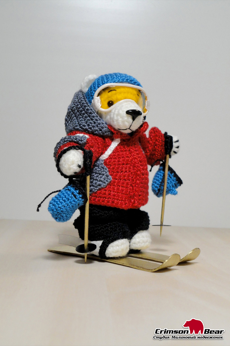 Рост мишки 11см. Подвижные лапы и голова. Шлем, очки, варежки, капюшон и лыжи снимаются.