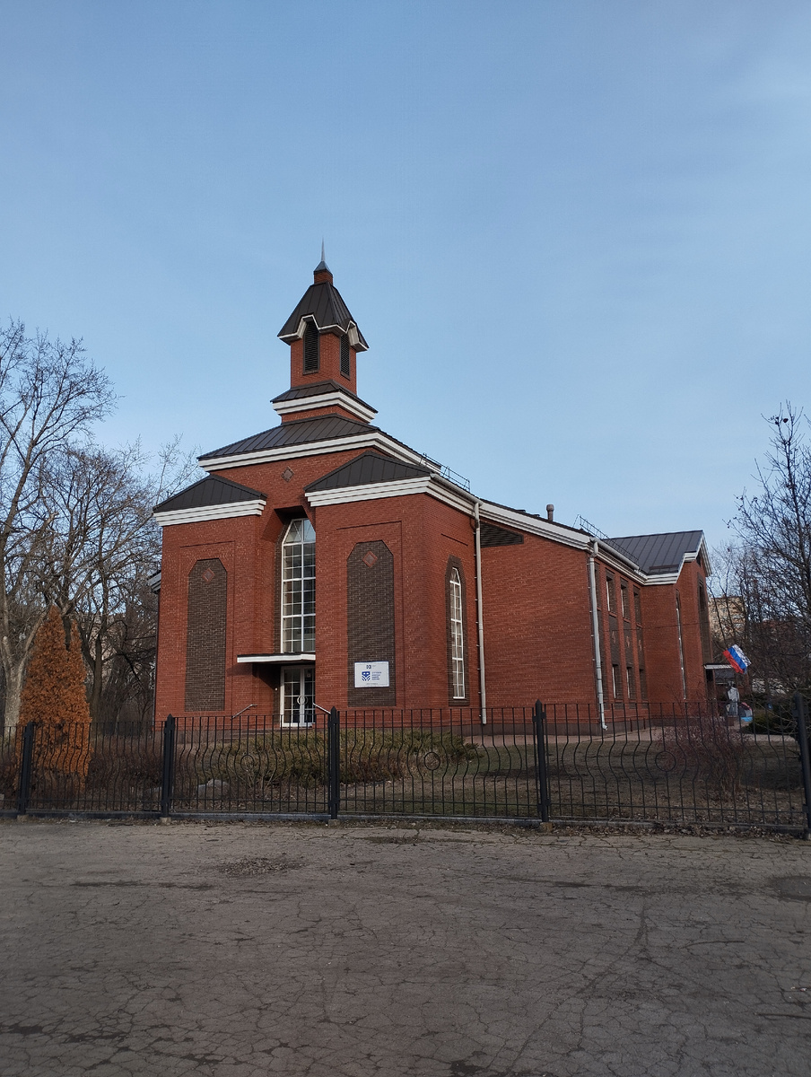 Начну с этого необычного здания, чтобы таким образом ответить на вопросы некоторых читателей по поводу кинотеатра Строитель, который в этом месте во времена СССР средоточием культурной жизни микрорайона Черёмушки в Донецке. Об этом подробно здесь: Итак, здание на заглавном фото как раз находится на том месте, где в начале двухтысячных разрушался ставший никому ненужным кинотеатр Строитель. И как же это случилось? Подчеркну, с девяностых в Донецке очень активно работали всевозможные западные религиозные организации. В том числе церковь мормонов. Именно она сумела построить вместо советского кинотеатра свою церковь. В 2014-том американцы спешно отправились к себе за океан, а здание приняло центр молодежных инициатив. Любопытный факт, не так ли? В процессе разрушения Строителя приходил в запустение одноимённый сквер. Но всё изменилось с приходом в Донецк наших шефов из Москвы. Ещё осенью 2023-го они взялись за масштабную реконструкцию. И вот в декабре прошлого года завершился ее первый