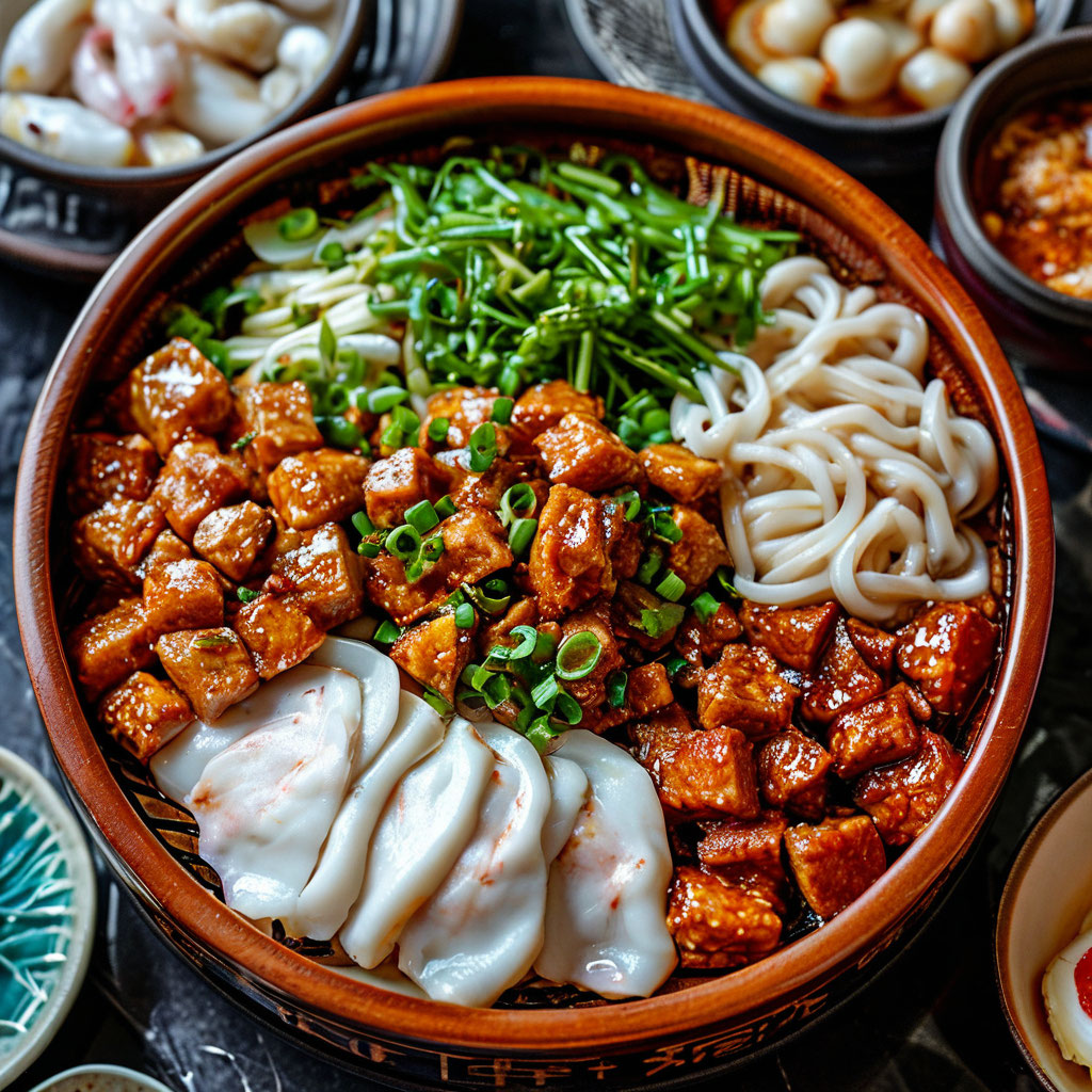 В Китае существует множество вариантов супов с лапшой, включая фенгуань с курицей или суп с лапшой и свининой. Часто в них добавляют специи и травы, чтобы улучшить вкус и аромат. - Мапо тофу