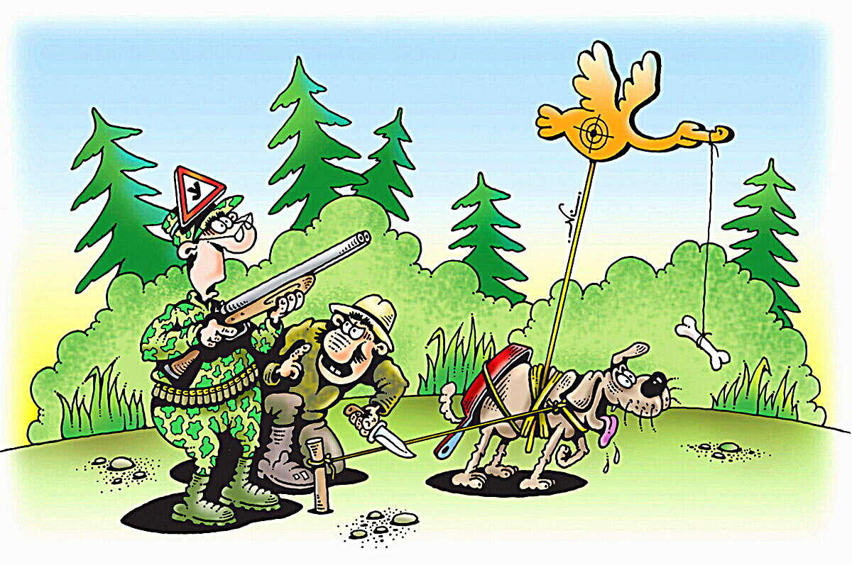Это 800-я публикация канала. Поэтому хочу посвятить её работам одного из любимых авторов. Сегодня вас ждёт новый сборник весёлых историй от известного казахстанского карикатуриста. Работы Игоря Кийко вы узнаете из тысячи - ведь это всегда ироничные, жизненные сюжеты в ярком оформлении. Понятны они людям всех возрастов, любого пола и профессии. Неважно, есть ли текст, или шутка построена на происходящих действиях и эмоциях персонажей. Это будто анекдот. Коротко, ёмко и вызывает улыбку. В этот раз вас ждут карикатуры про любителей охоты и рыбалки. Приятного чтения) Начнём с персонажей, которые отправляются в лес за дичью. Хотя кто сказал, что каждый зверь станет трофеем? У Кийко животные вообще хитрые и сообразительные. Справиться с ними так просто не получится. Охотник - "чайник" - это нечто. Кстати, рыбак - новичок тоже будет в конце. Найдётся здесь и чуток шуток с чёрным юмором. И куда же без темы, муж вернулся с охоты - а дома спрятался любовник жены? Следующий охотник проявил нах