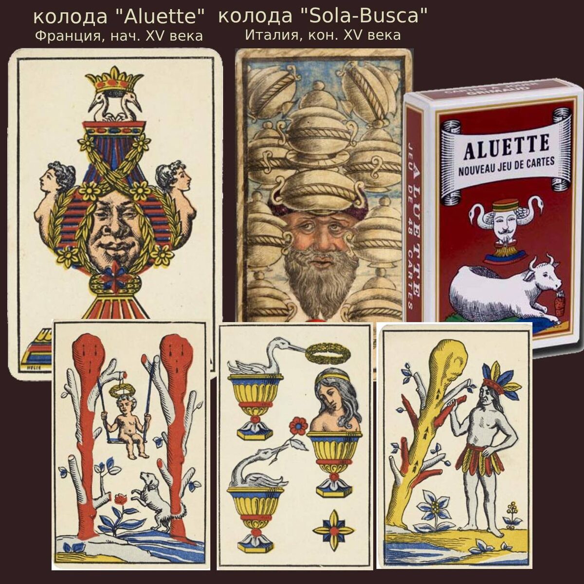 В своих видео я уже неоднократно упоминал французскую "архаичную" колоду игральных карт "Алют" (Aluette). Уже более шести столетий существует и эта, крайне интересная колода, и игра с одноимённым названием - "Алют", у игры есть свои характерные правила и особенности отправляющие нас к моменту появления игральных карт в Европе, об этом, в одном из ближайших видео. Колода очень похожа на испано-итальянские карты, с т.н. "латинскими" мастями (монеты, чаши, дубинки-посохи, мечи), но (!) есть и очень интересная особенность. Мы считаем, что "сюжетные" числовые карты появились в северо-итальянской колоде СОЛА-БУСКА, в конце XV века (откуда эту идею и заимствовал Артур Уэйт для своей знаменитой колоды Таро, в начале ХХ века). Так вот, развитые (и весьма странные, загадочные) сюжеты на числовых картах (не на всех) появились ещё раньше, в этой самой "архаичной" французской колоде - "Алют", что делает её, на фоне испано-итальянских колод того периода (с "латинскими" мастями) - УНИКАЛЬНОЙ! Да, и к
