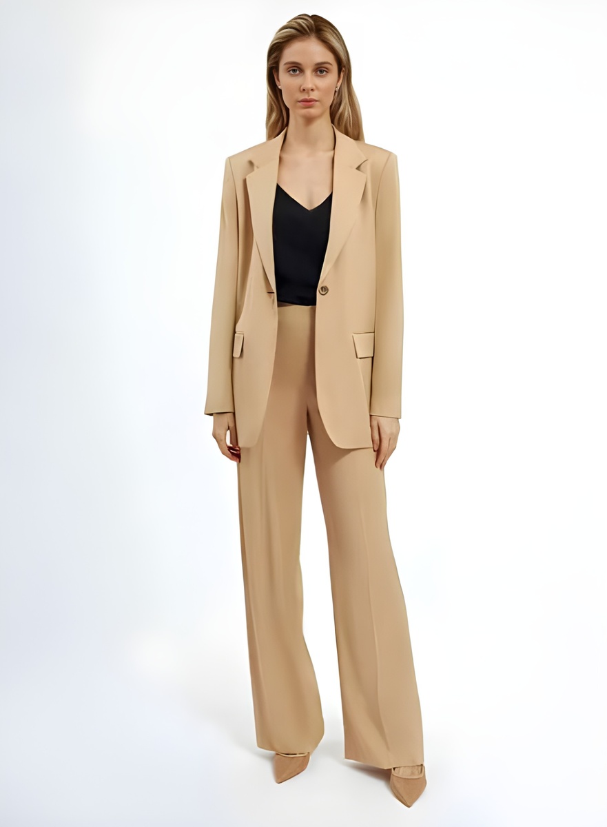Жакет выбираем слегка удлиненный, с мягкой линией плеча. Такой крой визуально стройнит и создает элегантный силуэт. Актуальные цвета – теплый бежевый, жемчужно-серый или приглушенный синий. В тренде натуральные и смесовые ткани с добавлением шерсти или шелка – они хорошо держат форму и меньше мнутся.