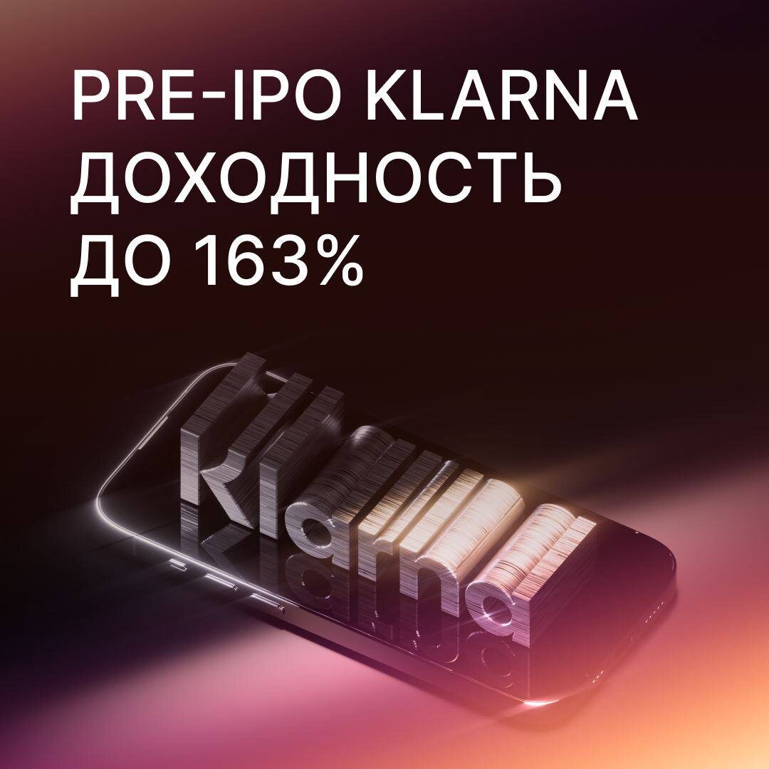 Pre-IPO Klarnа: инвестиции в крупнейший финансовый суперапп 💰 Klarna — разработчик платформы для обработки онлайн-платежей по модели Buy Now, Pay Later (BNPL). Компания может провести одно из крупнейших IPO в 2025 году. Почему это интересный инвестиционный кейс? 🤒 150+ млн пользователей Klarna в мире; 🤒 $107 млрд — ожидаемый общий объем оборота товаров; 🤒 IPO c аллокацией 100%, разрешение на IPO получено, ожидается в I-III квартале 2025 года; 🤒 $17,5 млрд — текущий индикатив капитализации; 🤒 доходность инвестиций до 163% при оптимистичном сценарии. ❕ Инвестиции в pre-IPO Klarna доступны квалифицированным инвесторам, сумма вложений — от $10 000.