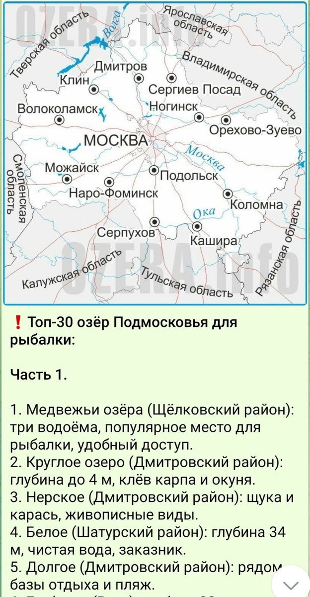 Друзья мои предлагаю Вам рассмотреть топ озёр МО.