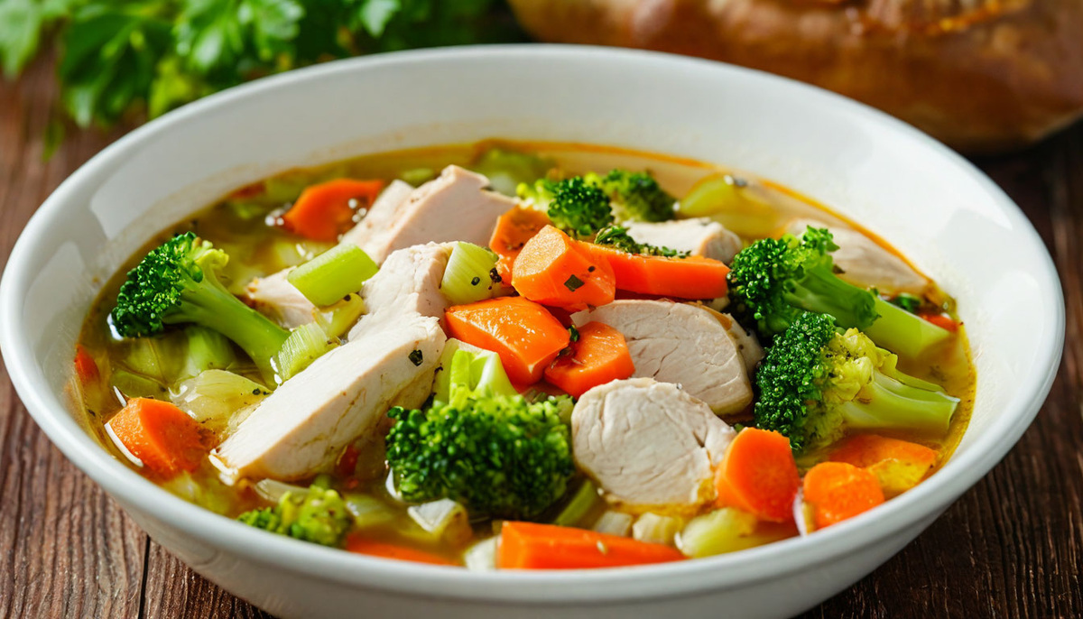 Филе куриной грудки 2 шутки Лук 1 штука Вода 1 800 мл Брокколи 350–400 г Морковь 1 штука Сельдерей 2 стебля Соль по вкусу Перец чёрный молотый по вкусу