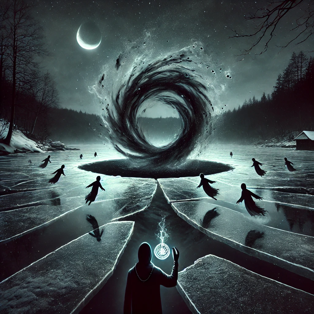 Порыв ветра ударил в спину, толкая к дому. Максим поёжился и впервые заметил озеро за усадьбой – огромное, закованное в лёд, оно простиралось до самого горизонта. На секунду ему показалось, что в центре озера что-то движется под толщей льда, что-то тёмное и бесформенное.