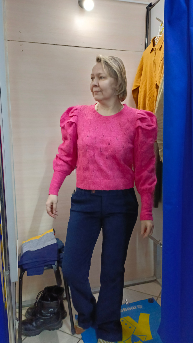 Приветствую всех на своём канале! Мы сегодня в Мегахенд вырвались))). Погуляли, побродили, поискали, попримеряли 😁. Сейчас вам буду показывать 😁. Скидка дня 30 %. Покупок не было. Вещи есть и интересные, но так уже не хочется ничего зимнего и тёплого, но другого пока нет. Вот именно с показа такой вещи (которая заинтересовала) я и начну. Очень понравились рукава "буфы". Но он слишком тёплый, а его состав далёк от идеального. Датский бренд, основанный в 1994 году. Всего 5% альпаки , и 5 % шерсти. Всё остальное, синтетика. Может быть увижу его на существенных скидках, тогда и подумаю про покупку. А сейчас точно нет ⛔. А это бренд джинсов, участвующих в данной примерке. Стоимость такая же, что и у свитера. Чем-то понравился 🤔 и этот свитерок в стиле спорт-шик. А джинсы, пока были на вешалке, совершенно скиннями не были. А на мне стали именно скинни. Ну или что-то очень напоминающее их. Ничего в его составе нет хорошего, к сожалению. С этими же джинсами... Мне эта штучка маловата