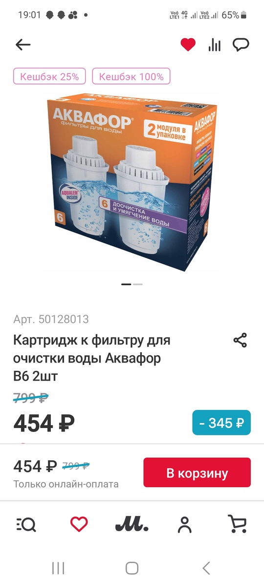 Для тех у кого есть фильтр для воды Аквафор) Хорошая акция в Мвидео если у вас есть бонусы. У меня получилась цена 454 рубля. В обычном магазине больше 700 рублей стоит. Сегодня забрала 2 упаковки.