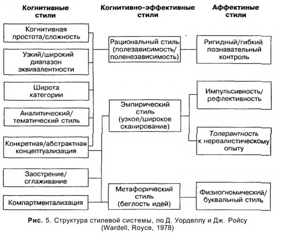 Когнитивный стиль — это устойчивая, индивидуальная для индивида особенность восприятия и анализа поступающей информации. При этом концепций Когнитивных стилей много и все они выделяют разные элементы этой системы. Ниже будет один из примеров.