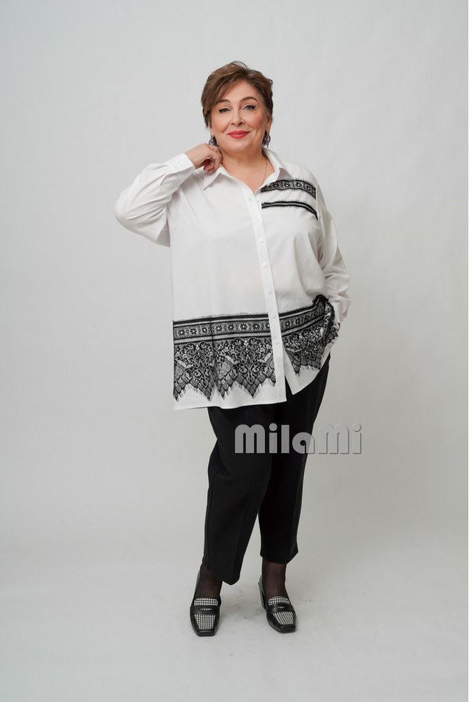 Ухоженной и стильной леди можно выглядеть в любом возрасте, даже преодолев рубеж 60 лет. Зрелые женщины не обязаны выглядеть как старушки, они могут производить впечатление, пусть даже уже не обладают стройной фигурой или тонкой талией. 1. Прямые, чуть укороченные черные брюки классического кроя со стрелками грамотно открывают щиколотки, что дарит образу легкость, а даме – изящество. Хороший ансамбль с такими брюками составит легкая просторная белая рубашка с серо-черным геометрическим орнаментом в зоне левой ключицы и по низу передней части. Практичные черно-серебристые туфли с квадратными носами логично дополняют этот стильный образ. 2. Черные широкие брюки-палаццо хорошо смотрятся на даме с пышными формами, скрывая лишний объем бедер. В комплекте со свободной черной блузкой на пуговицах с оригинальной отделкой (черный крупный горох по светло-коричневому фону на воротнике и с левой стороны груди) брюки создают стильный ансамбль, уместный как прогулке, так и не слишком формальном меро