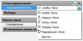 Атрибуты точек подключения X?TERMn, включенные в графический образ компонента, разрывают проводники при вставке в них компонентов, в этих точках также происходит подключение компонентов к проводникам. В графический образ компонента точки подключения добавляются из раздела «Точка подключения» «Редактора атрибутов Конструктора графических образов». Из списка поля Направление/стиль выбирается направление подхода провода к точке подключения: слева, сверху, снизу, справа, радиальное. Для этих стилей используются соответствующие шаблоны атрибутов точек подключения по умолчанию (файлы BB….dwg). Формирование списка стилей точек подключения выполняется динамически, на основании чертежей-шаблонов, найденных в библиотеке графических образов. Имя шаблона точек подключения содержит указание на то, что это шаблон точек подключения – ВВ…, стиль точек подключения и направление подходящего провода. В поставку AutoCAD Electrical включено несколько стилей точек подключения. При необходимости можно создат
