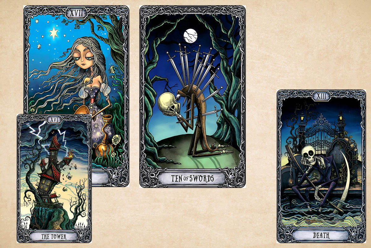 Казалось бы, в вопросах Здоровья Звезда – прекрасная Карта. Но мы всегда смотрим на то, какие Карты выпали по соседству. И тут оно не самое приятное: Аркан раскрыт Башней, а рядом расположилась Десятка Мечей.