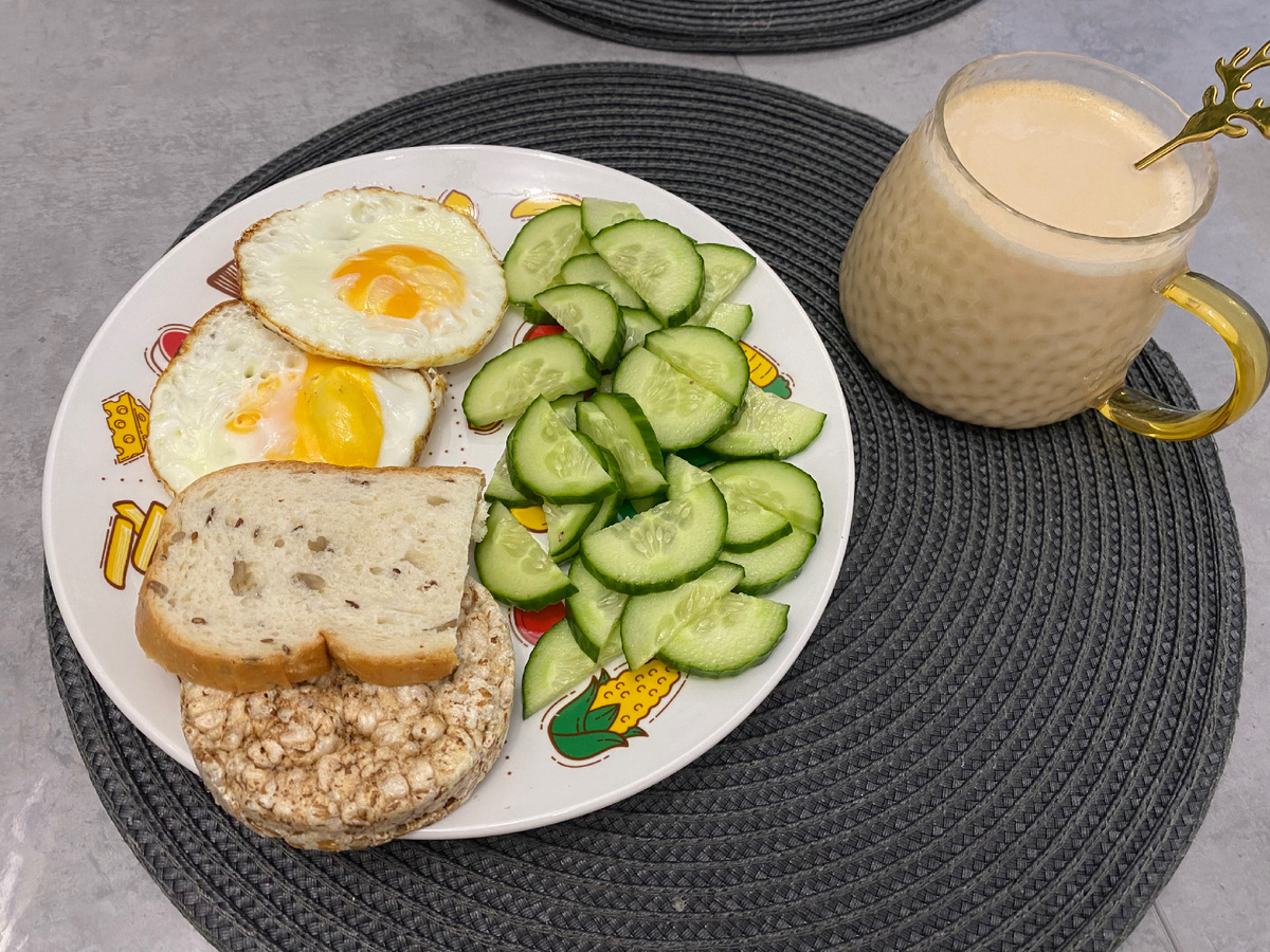 Приветствую вас, друзья! Сегодня третий день моего эксперимента с методом «здоровой тарелки», и я хочу поделиться с вами своими успехами и ощущениями. Что я ела сегодня? Сегодня мой завтрак состоял из 2 жареных яиц, огурца, хлебца и кусочка зернового хлеба. Кофе с молоком. На обед у меня был салат из свежих овощей, заправленный сметано и дижонской горчицей, Куриные котлеты, булгур. перекусила бутербродом с вареной колбасой 🤦♀️ А на ужин ничего не хотелось. Пила воду. ## Как я себя чувствую? Я уже начинаю привыкать к новому режиму питания. Чувство голода между приемами пищи практически отсутствует благодаря достаточному количеству белка и сложных углеводов. Кроме того, я заметила,что стала больше пить воды, что тоже положительно сказывается на моем самочувствии. Но много пить пока не получается. ## Какие результаты? Хотя прошло всего три дня, я уже вижу первые изменения. Вес начал снижаться, и я чувствую себя легче и энергичнее. Конечно, это еще не окончательный результат, но