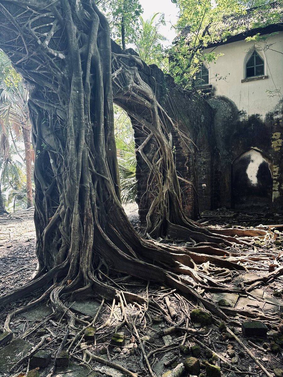 Остров Росс: Загадочные руины в объятиях природы Когда-то остров Росс был административным центром британской колонии на Андаманах. Здесь кипела жизнь: колониальные резиденции, церкви, госпиталь, клуб для офицеров — британцы создали на этом крошечном клочке земли настоящий европейский уголок. Однако время и природа взяли свое… После разрушительного землетрясения 1941 года британцы покинули остров, а вскоре сюда пришли японцы. Они использовали его как военную базу, но после Второй мировой войны остров Росс был окончательно оставлен людьми. С тех пор его захватили джунгли. Сегодня руины острова Росс — это завораживающий симбиоз истории и природы. Огромные корни баньянов словно гигантские щупальца оплетают старые здания, разрушенные стены покрыты мхом, а внутри бывших британских домов спокойно разгуливают олени и павлины. Атмосфера таинственности здесь ощущается в каждом уголке.