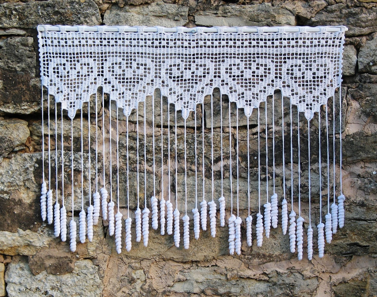 А чтобы ваша занавеска выглядела ещё эффектнее, можно добавить к ней ажурный подхват. Он может быть выполнен в любой технике и с любым орнаментом — всё зависит от вашей фантазии!